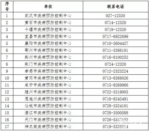附1 湖北省各市(州)疾控中心咨询热线