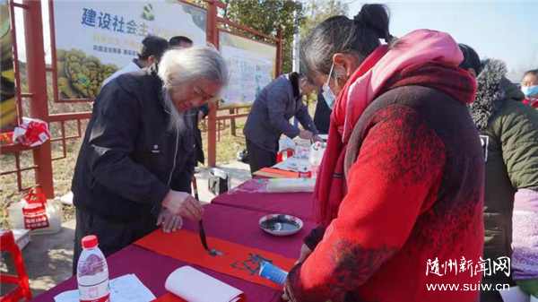 ▲书法家为随县新街镇水寨村的父老乡亲书写春联