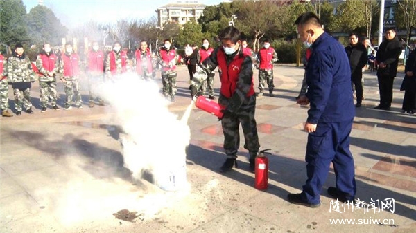 活动现场,广水市消防救援大队队员们讲解了灭火相关理论知识,并演示处理突发火情应对技巧。参训人员积极参与互动,体验消防灭火过程。 (随州日报通讯员黄萍、梅广摄)