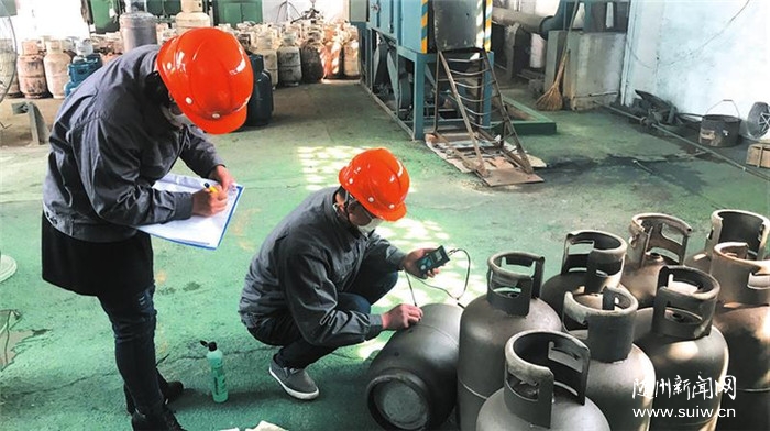湖北特检院随州分院积极服务民生,全面做好检验检测服务工作,图为该院人员开展液化石油气瓶安全检验。(随州日报通讯员吴坚王煜成摄)