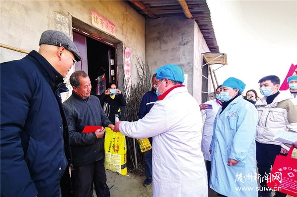 2月1日,曾都区市场管理局联合曾都区个私协会、随州市民营口腔医疗机构协会开展2021年春节慰问送温暖活动。10余名协会志愿者先后深入曾都区府河镇、洛阳镇、何店镇,为8个特困户送去米、食用油等生活物资和慰问金,向他们表达新春的祝福。(随州日报全媒记者李文军摄)