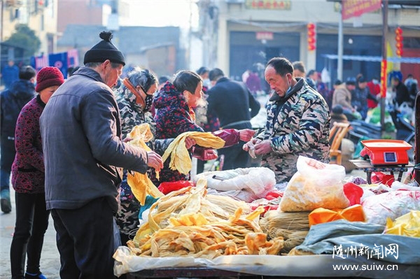 “赶年集”也是过年的内容之一,一是备年货,二是凑热闹。随州各乡镇的年货大集最热闹的时候莫过于小年前后,十里八乡的人们纷纷前来置办年货,准备热热闹闹过大年,人来人往中充满着浓浓的年味儿。年集不仅承载着人们深厚的春节情结,更是一个地区民俗文化的传承和集中展示。浓郁深厚的人情温暖,让人重拾记忆里的熟悉年味。