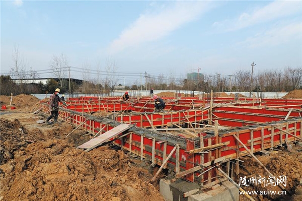 2月18日,蒋家岗小学扩建项目施工现场机声隆隆,数十名工人正在浇筑混凝土、绑扎钢筋、安装模板,一派繁忙景象。新春伊始,曾都区一批重大项目抢抓大好春光,纷纷开工,力争“开门红”。