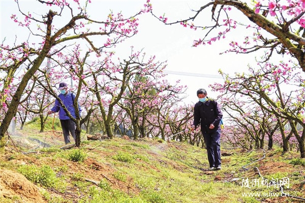随着气温逐渐回升,随县果农抢抓时节入园开展果树修剪、追肥、除草等各项工作,为今年丰产增收打基础。图为新街镇联合村果农正在油桃园里喷洒农药除草。 (随州日报全媒记者李文军摄)