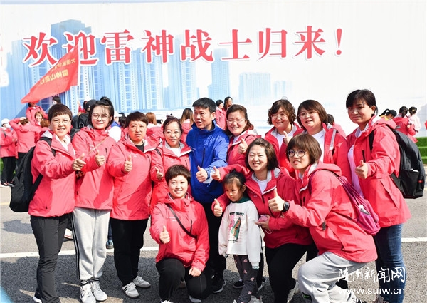 昨日,武汉雷神山医院红旗招展,欢呼声不断。全国500多位援鄂医疗队员及其家属,重回曾经紧张抗击疫情的战场。 楚天都市报极目新闻记者王永胜摄