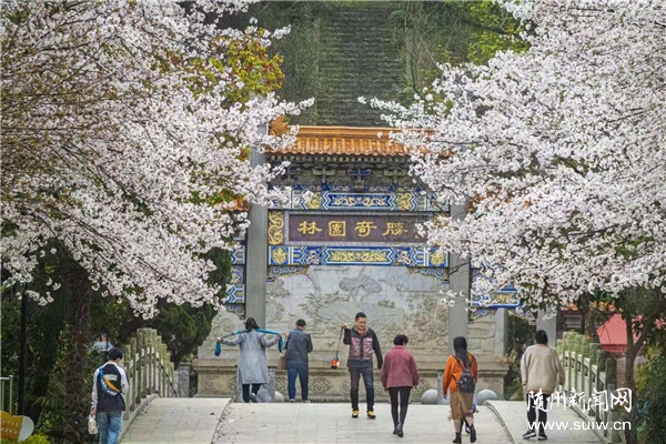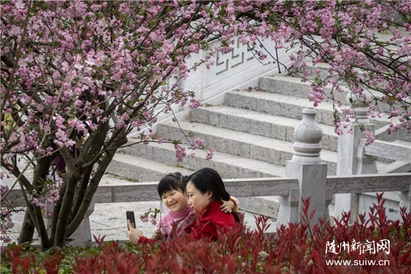 3月16日,市民在白云公园赏樱花,感受春天气息。近日,白云公园海棠、紫荆、红叶碧桃、春梅等10多种花卉竞相绽放,成为市民休闲娱乐的好去处。(随州日报全媒记者李文军摄)