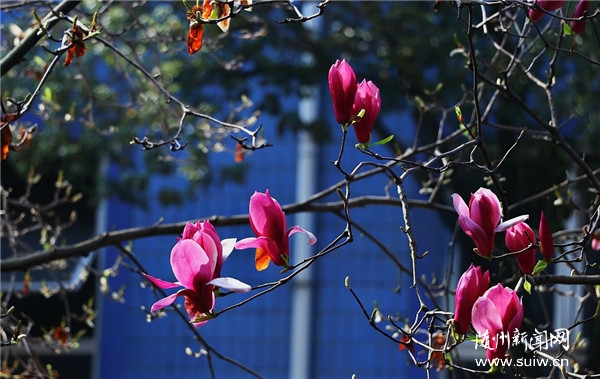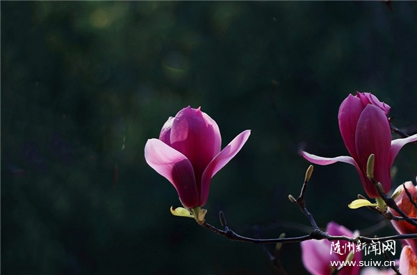 (全媒记者黄芳芳、通讯员周旋)“霓裳片片晚妆新,束素亭亭玉殿春。已向丹霞生浅晕,故将清露作芳尘。”阳春三月,湖北省随州市城区的红玉兰花开了,花瓣红里透粉,香气淡雅柔和,清新宜人,给人们带来春天的气息和问候。