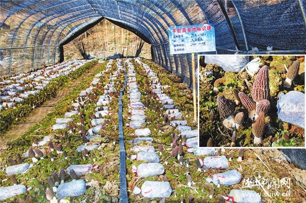 据了解,该基地是随县大海菌业有限公司,通过6年实验种植,采用“食用菌+水稻”的轮作模式,利用水稻田培育羊肚菌种植,通过“公司+农户”的方式,吸纳50多名村民在羊肚菌基地务工,每年每户增收4000元以上。 (随州日报全媒记者李文军、通讯员王本升摄)