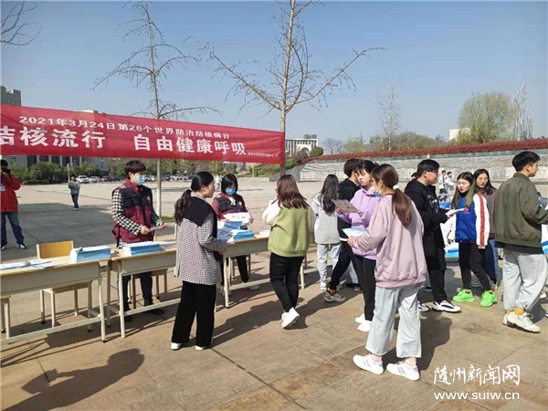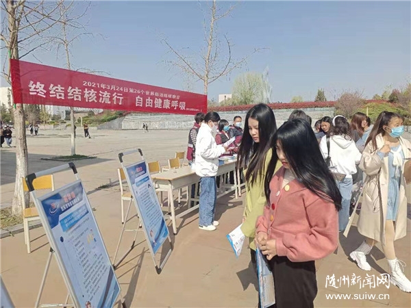 随州日报讯(全媒记者陈巧玲、通讯员黄万春)3月24日,第26个“世界防治结核病日”,今年的宣传主题是“终结结核流行、自由健康呼吸”。当天,市疾病预防控制中心组织结核病防控专业人员,到随州职业技术学院开展“世界防治结核病日”主题宣传活动,提高学生对结核病防治的认知水平,增强自我保护意识。