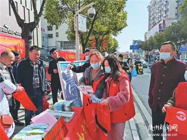 3月22日,市水利和湖泊局在随州城区组织开展第二十九届“世界水日”和第三十四届“中国水周”宣传活动,通过摆放宣传展板、发放宣传资料等形式,向市民宣传爱水、节水、治水知识,引导人们珍惜水资源、保护水资源。(随州日报全媒记者张清、通讯员王松林摄)