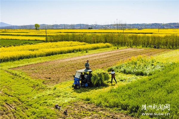 人勤春来早,农事催人忙。随着气温回升,近日各地农村田间到处是一派春播春种的忙碌景象,农民忙着春耕春管,为丰收打下基础。图为城南新区白桃村村民正在收割草料。 (随州日报全媒记者李文军摄)