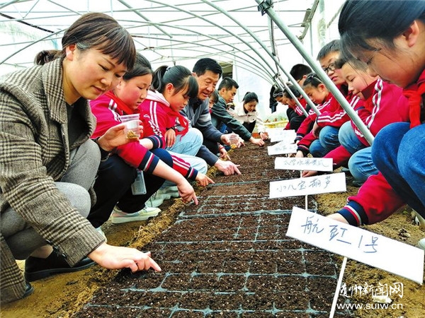 近日,随县尚市镇净明小学举行2021年“太空种子种植活动”启动仪式。该校通过一系列活动,让青少年了解航天生物技术,培养他们的实践能力和创新精神。(随州日报通讯员汪家望摄)