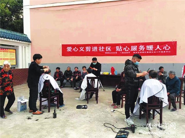 4月15日,曾都区北郊街道八里岔社区开展爱心义剪活动,为社区老人提供免费上门理发服务,促进社区居民互动交流,增强居民的凝聚力和归属感。(随州日报通讯员胡琦、庞玲玲摄)