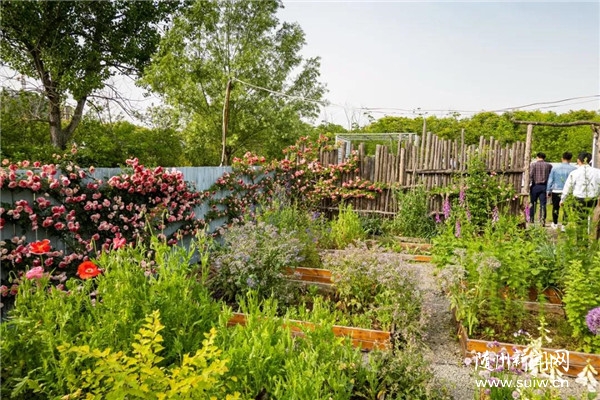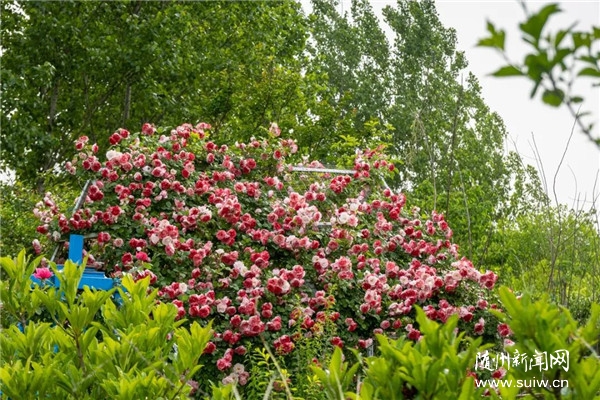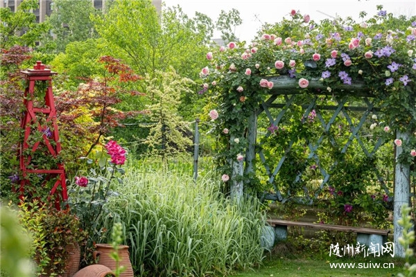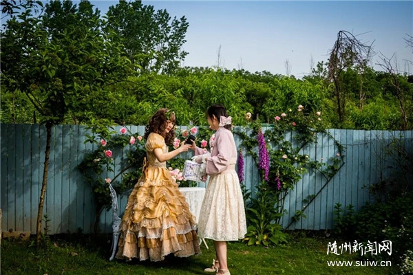 不少慕名前来的游客正在玫瑰园里游览赏花。