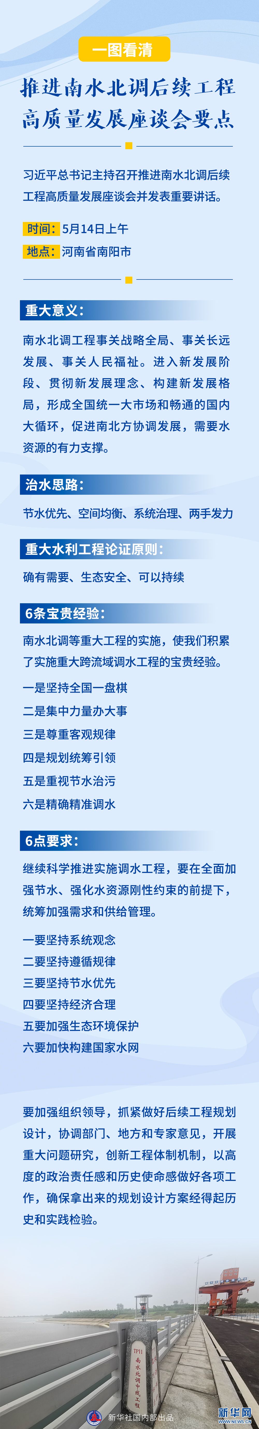这次座谈会上,总书记对推进南水北调后续工程高质量发展提出了6点要求。