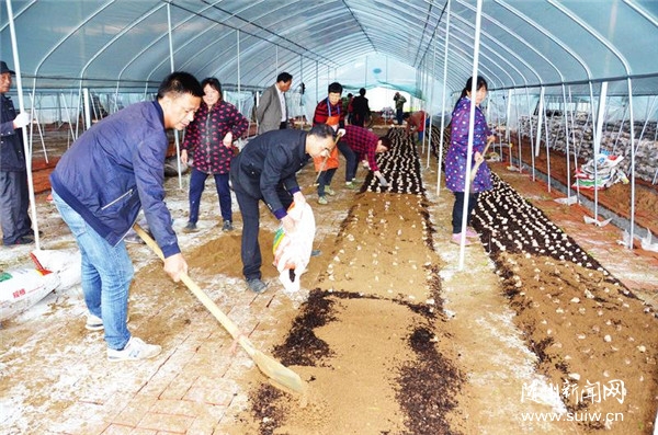 市食用菌协会与湖北宝蕈农业科技有限公司投资500万元建设冬荪新模式栽培试验示范合作项目。图为5月17日食用菌技术人员现场指导帮冬荪安家,确保试验成功。(随州日报通讯员石守京摄)