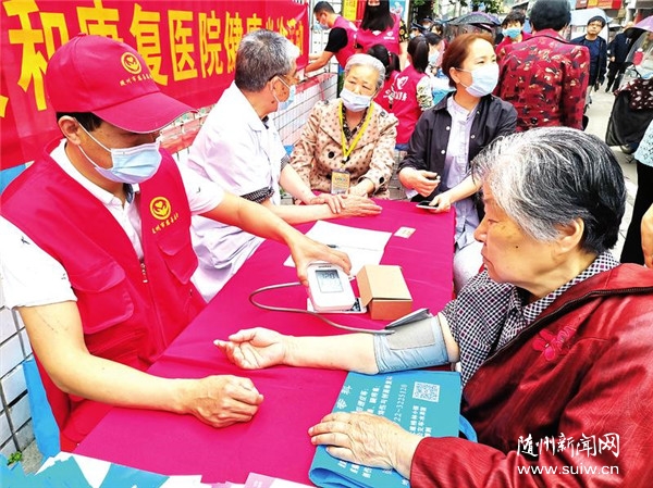 5月27日,曾都区西城办事处玉波门社区联合随州市中心血站、随州大和康复医院等,开展“学党史、感党恩,我为群众办实事”送健康免费体检活动。医护人员免费为社区居民提供测量血压血糖、诊断、健康咨询等服务,还有老中医为居民把脉,疼痛康复医生为居民进行针灸、拔罐理疗,引导大家养成健康的生活方式。(随州日报全媒记者陈巧玲、通讯员龚巧玲摄)