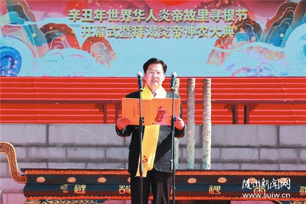随州日报讯(全媒记者张琴)华夏千秋共尊始祖,炎黄一脉同拜神农。2021年6月6日(农历四月廿六),辛丑年世界华人炎帝故里寻根节开幕式暨拜谒炎帝神农大典在随州举行,海内外炎黄子孙齐聚烈山,恭贺炎帝诞辰,缅怀始祖功绩,凝聚奋进力量,共襄复兴伟业。