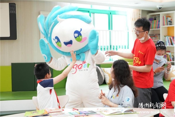 来自少儿出版社的志愿者带孩子们阅读故事绘本,从《小羊为什么生气》到《骨碌、骨碌、骨碌》,再到《这到底是什么》,一本接一本,孩子们听得意犹未尽。随后,志愿者与孩子们大手牵小手,一起进行“我为司庆填色彩”活动,为吉祥物“洋洋、保保”和“在一起·together”司庆图标填上最喜欢的色彩。太保吉祥物“洋洋”人偶也来到了现场,和孩子们热情互动,给孩子们带来欢声笑语。