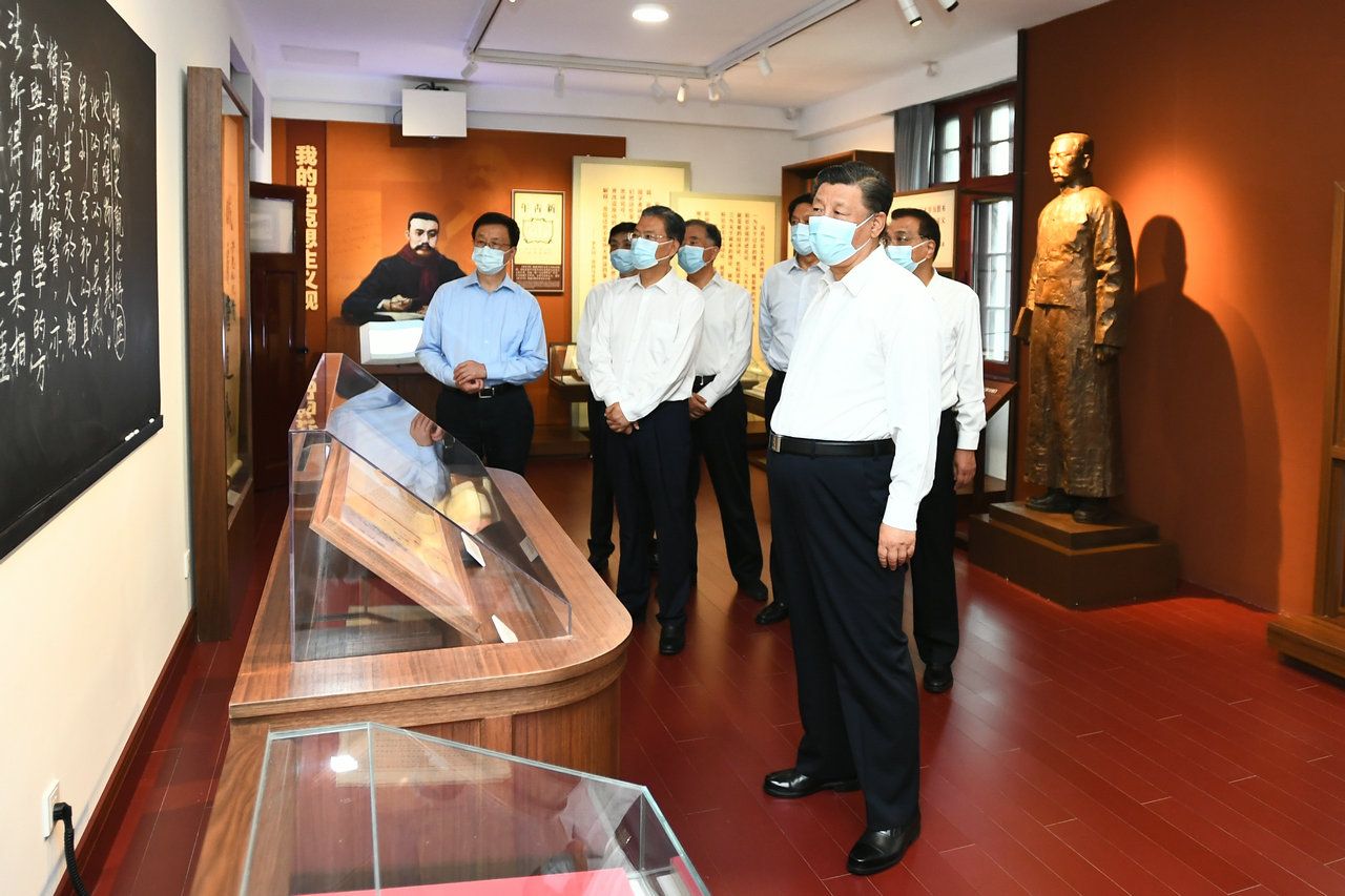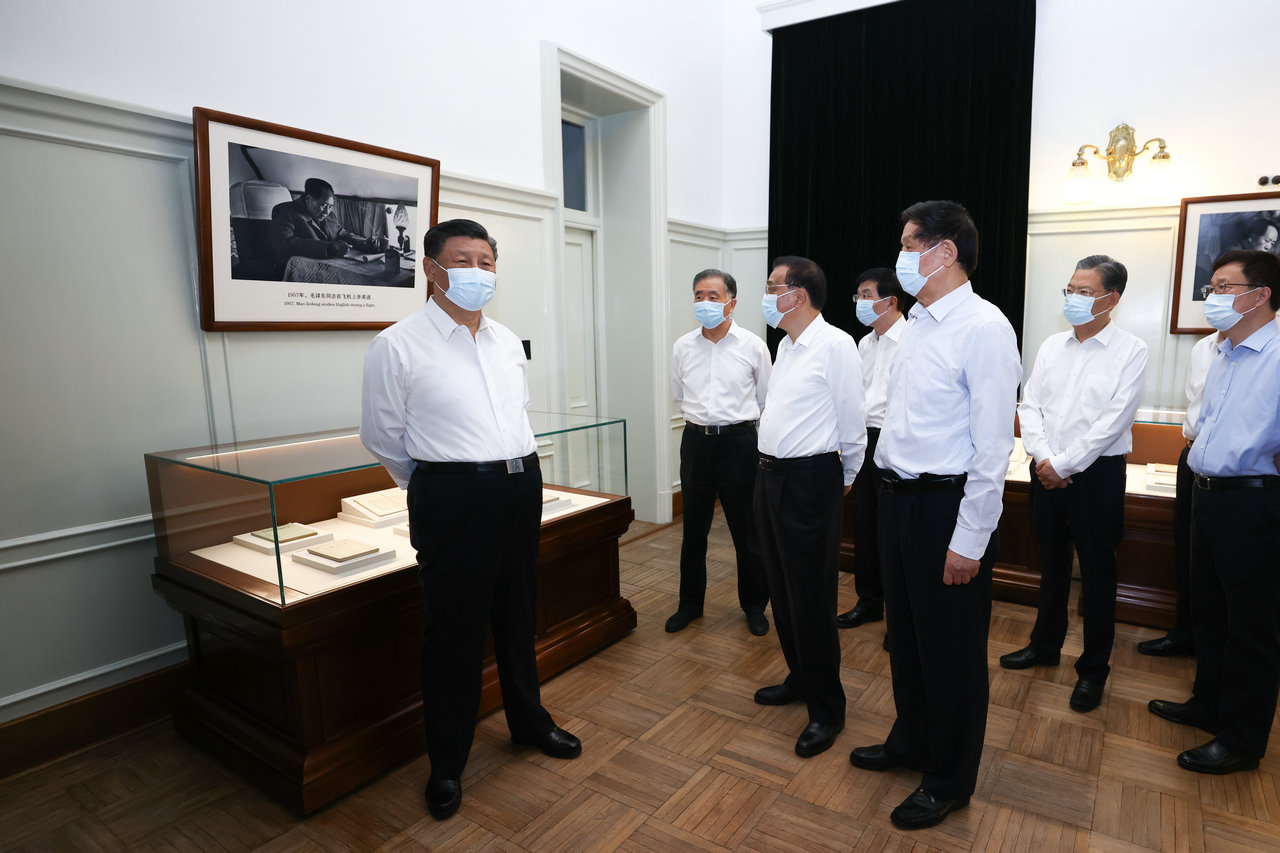 25日下午,习近平带领中央政治局同志来到北大红楼,参观“光辉伟业 红色序章——北大红楼与中国共产党早期北京革命活动主题展”,重温李大钊、陈独秀等开展革命活动、推动马克思主义在中国早期传播、酝酿和筹建中国共产党等革命历史。展厅内,一张张图片、一件件文物,全面展现了那个时期的光辉历史。习近平不时停下脚步,询问相关细节。他指出,北大是新文化运动的中心和五四运动的策源地,最早在我国传播马克思主义思想,也是我们党在北京早期革命活动的历史见证地,在建党过程中具有重要地位。要加强红色资源保护和利用,尊重历史事实,准确评价历史,正确学史用史。