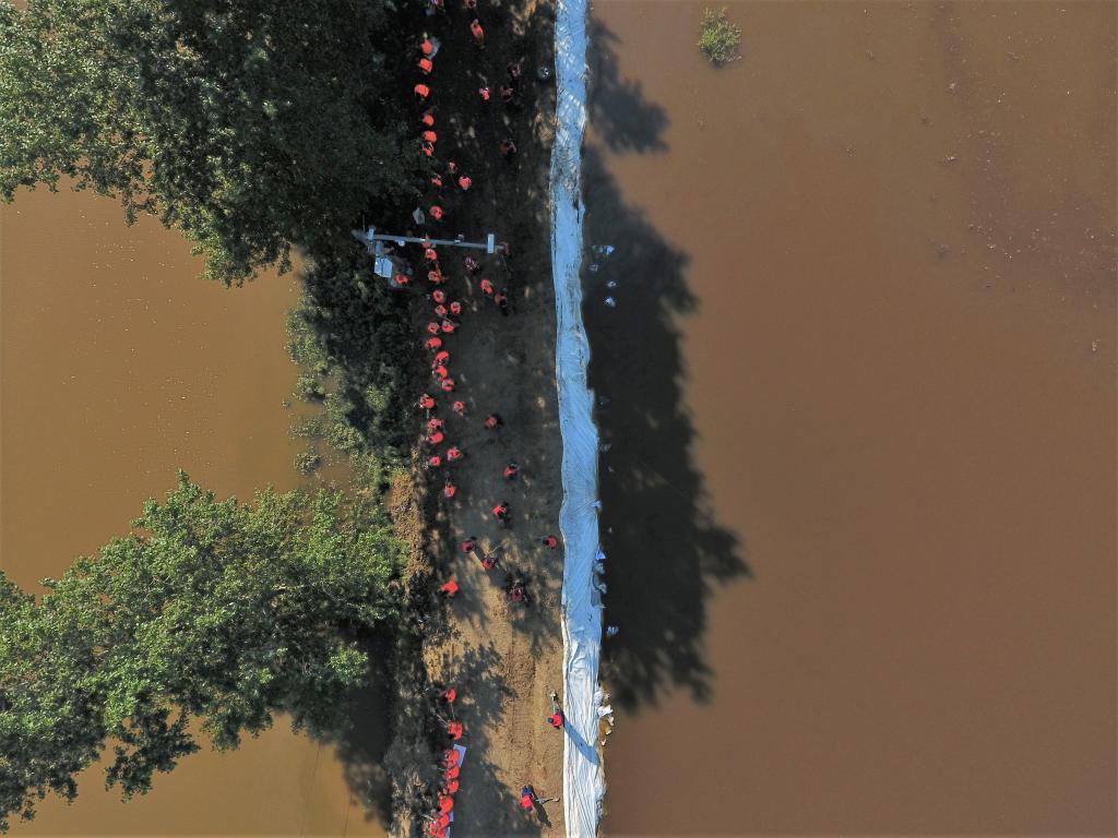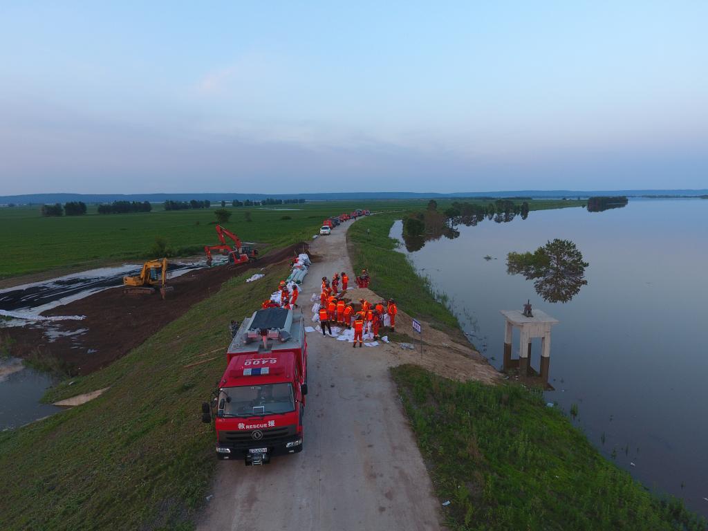 黑龙江省大兴安岭地区森林消防支队对坝体进行加固。新华社发(顾景坤摄)
