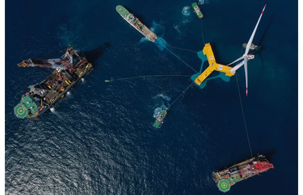 全球首台抗台风型漂浮式海上风电机组顺利安装。受访者供图