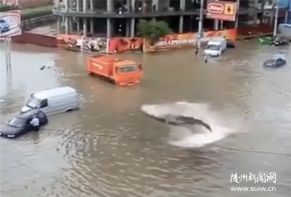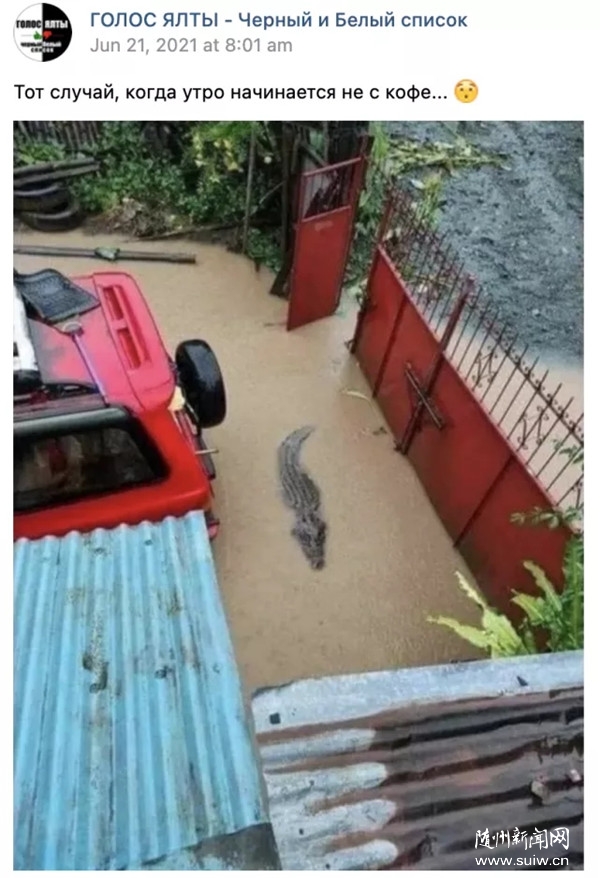 20日夜间,除了“郑州海洋馆的鲨鱼跑出来了”的视频在网上流传外,还流传着“鳄鱼也从海洋馆出来了”的说法,也配了一条视频,画面显示一条鳄鱼正咬着一具疑似女性的尸体。