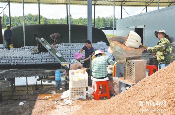 连日来,随县洪山镇新职农食用菌种植专业合作社抢抓季节,赶制50万袋秋栽菇棒。(随州日报通讯员许景闻、石守京摄)