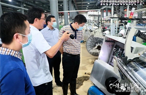 ▲人保财险湖北省省公司副总经理 韩爱周 人保财险随州市分公司总经理李斌 在湖北金龙新材料股份有限公司查看因灾受损设备