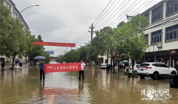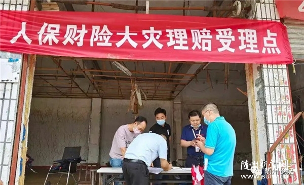 在洛阳镇,人保财险曾都支公司设立了“人民保险”心服务站,接受报案协助当地政府抢险救灾。