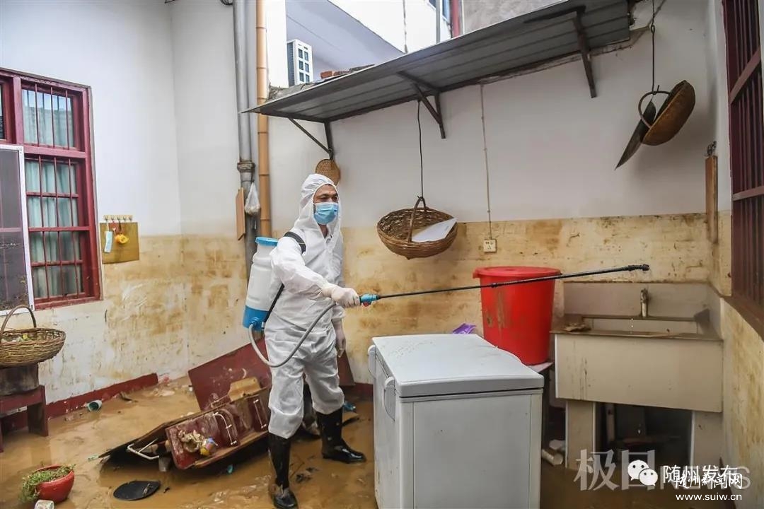 背着喷壶的消毒人员中,一名身着白色防护服、戴着眼镜的老人走路都有点吃力。原来,他今年已经60岁,马上就要退休,他叫鲁礼端,是尚市镇卫生院职工,被随县疾控中心抽调来柳林镇。“从早上就来了,来的时候还在下雨。”他的同伴说,老鲁从来了后一直就没歇下过,现在他走路都有点困难了。