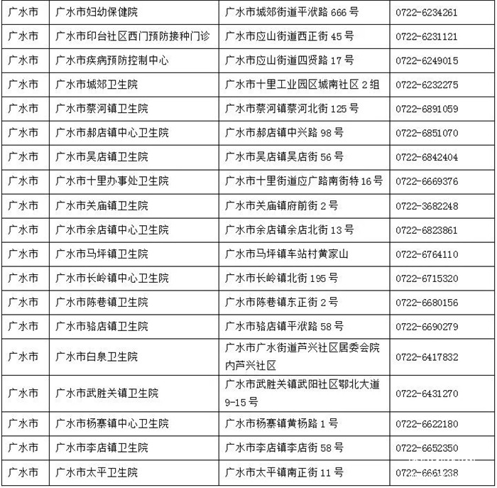 3、当前,随州市内新冠疫苗接种门诊(点)全天开放接种,未接种的12岁以上居民,可直接携带身份证(或户口本)就近前往接种门诊接种。