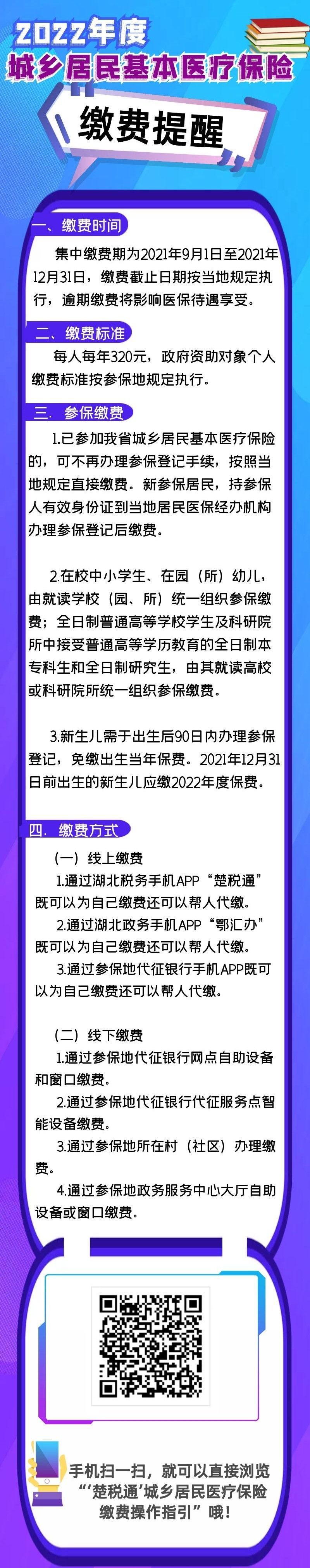 3、可以由村组(社区)代收代缴:可以由村组(社区)代收取个人城乡居民医保费,通过湖北省税务局电子税务局(www.ehbds.gov.cn)或当地代征银行进行归集缴费。