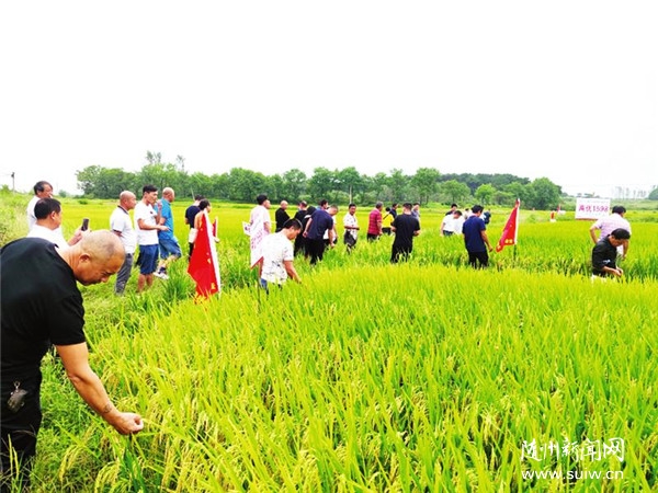 9月2日,广水市太平镇国泰农业有限公司邀请60余名种粮大户和合作社负责人现场参观稻田,了解水稻种植情况,交流种植管理经验。(随州日报特约记者程淇、通讯员左世东摄)