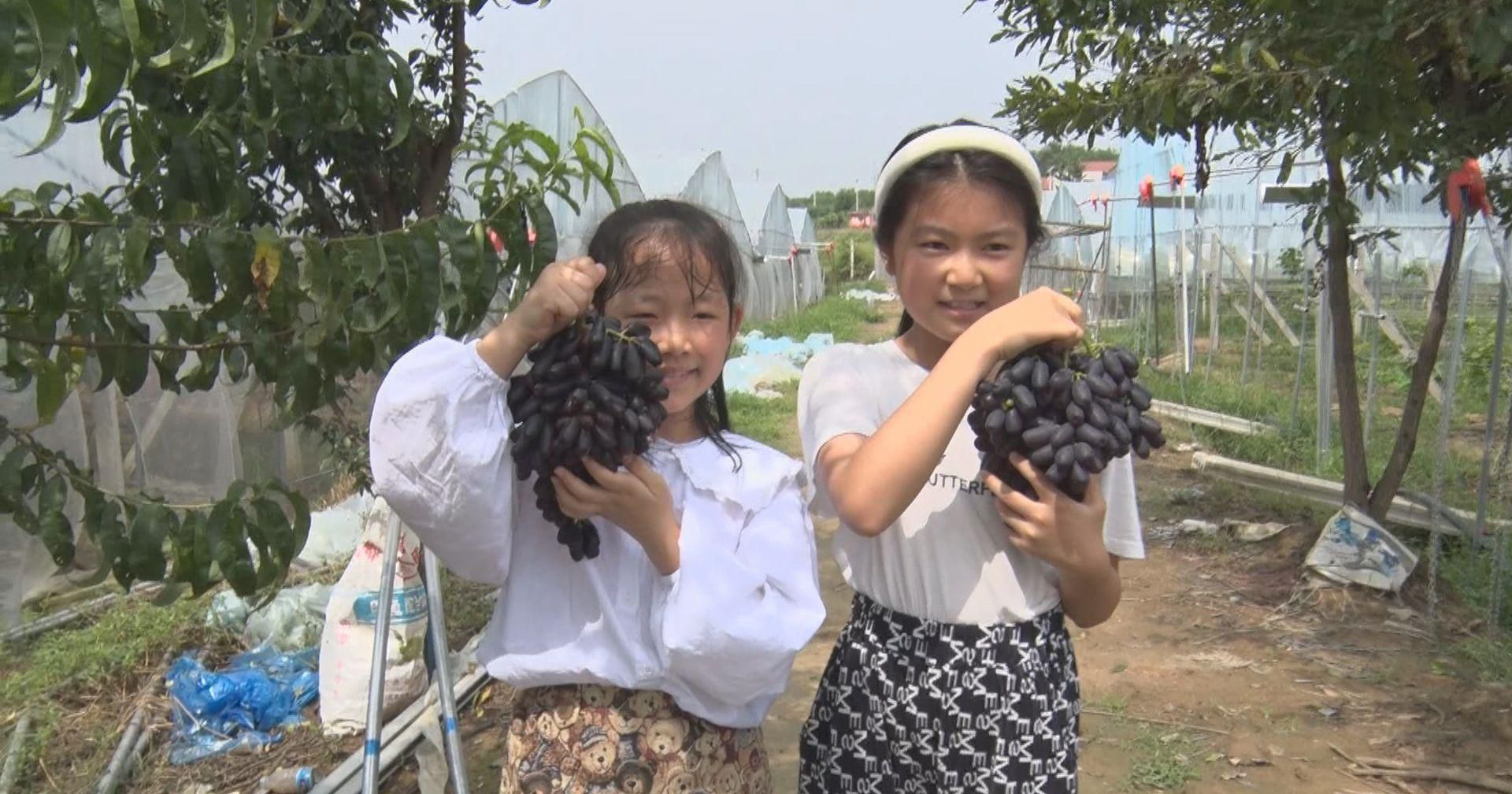 “老板,葡萄怎么卖?哪种好吃些?”“26元一斤,您可以摘点金冠葡萄,就是看起来碧绿透亮的那种,它个大皮薄、含糖量高,吃起来还带点玫瑰香味,游客都比较喜欢。”葡萄采摘园负责人彭继火边说着,边给游客递上筐子和剪刀。