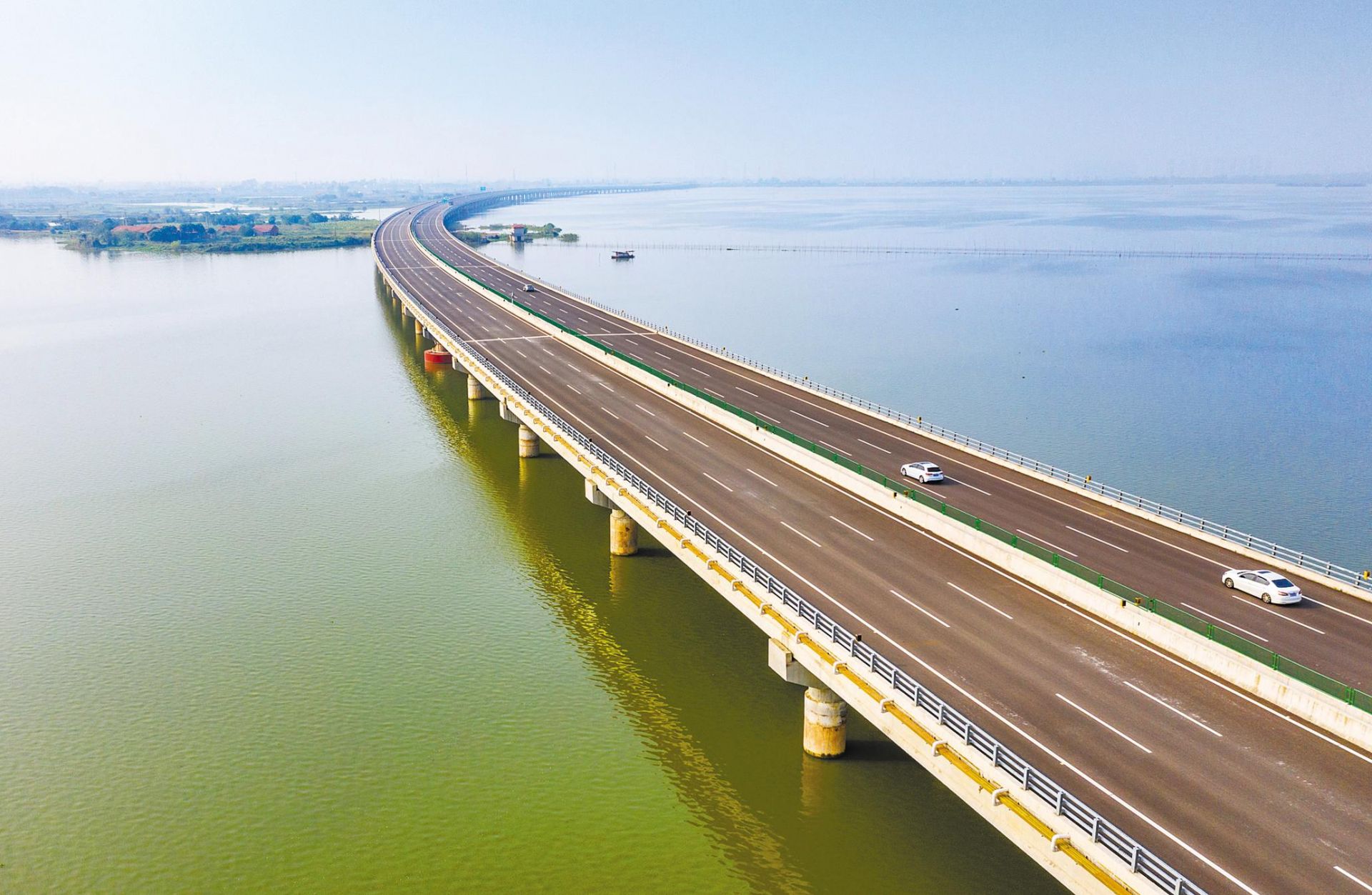 9月28日零时,总投资83.7亿元的鄂咸高速公路正式通车。图为车辆在该公路五四湖特大桥段行驶。 鄂咸高速是湖北省高速公路“九纵五横三环”规划布局的重要组成部分。 (湖北日报全媒记者 柯皓 摄)