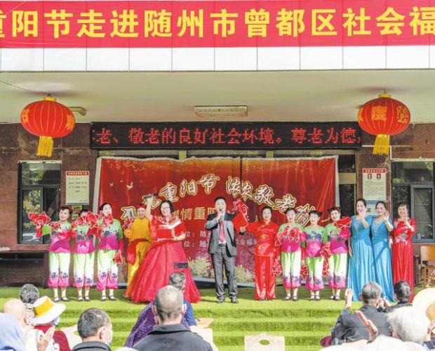 九九重阳节,浓浓敬老情。为弘扬中华民族敬老、助老、爱老的优良传统美德,丰富老年人的文化生活,10月13日,随州老年大学学员走进曾都区社会福利院开展重阳节慰问演出。老年大学一行60余人自创自编自演十余个歌舞、戏曲等文艺节目,让福利院的老人们感受到来自社会的温暖和关爱。
