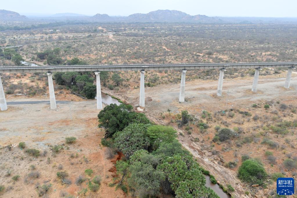 这是2017年2月23日在肯尼亚沃伊地区拍摄的蒙内铁路察沃河特大桥。蒙内铁路从设计阶段就把“绿色环保”作为定桥开道、筑路建基的前提和指导原则。新华社记者 孙瑞博 摄