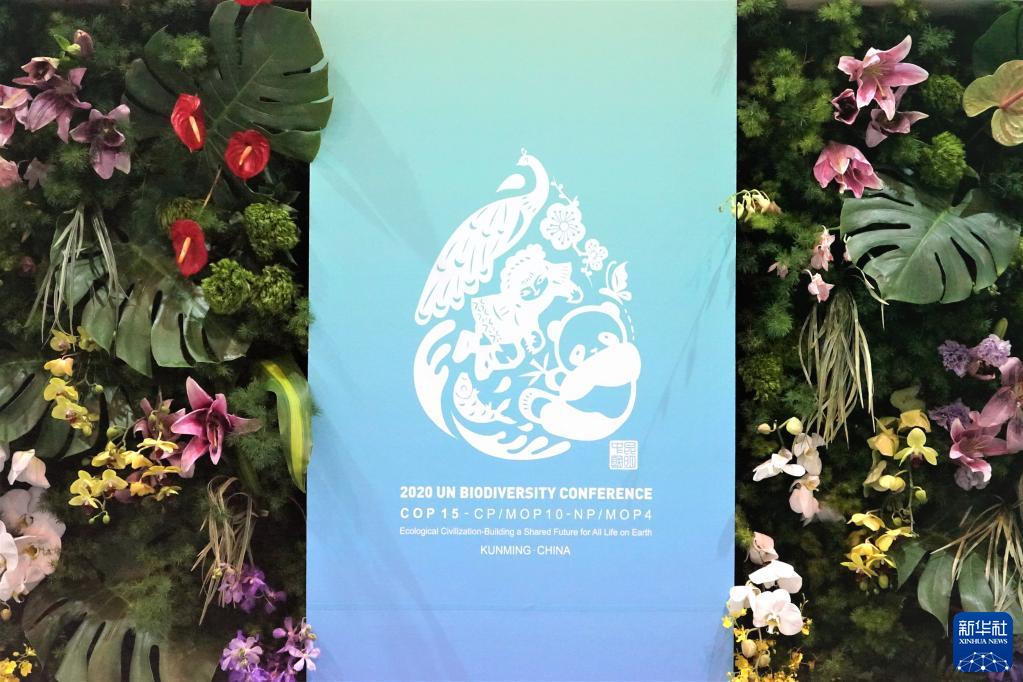 这是10月12日在《生物多样性公约》第十五次缔约方大会新闻中心拍摄的大会会标。新华社记者 陈君清 摄