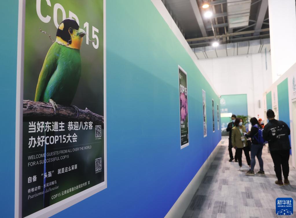 这是10月12日在《生物多样性公约》第十五次缔约方大会新闻中心拍摄的海报。新华社记者 王南 摄