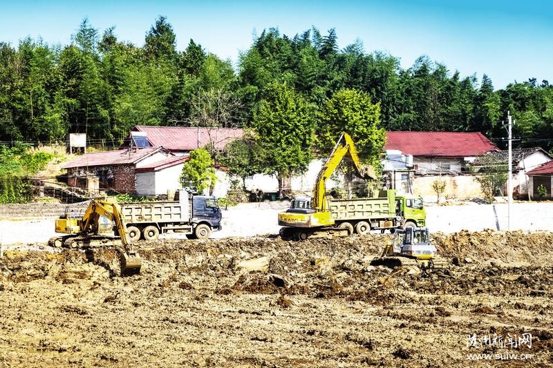 近日,大洪山风景名胜区长岗镇庹家村利用晴好天气,组织干部群众对全村堰塘进行集中清淤加固,夯实农田水利基础设施,提高农业抗旱保丰收能力。(随州日报全媒记者李文军摄)