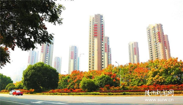 时值深秋,随州城区层林尽染,秋色满目,各种树木炫色斗艳,将随城装扮得美丽如画。图为迎宾大道沿途景观。(随州日报通讯员 聂少峰摄)