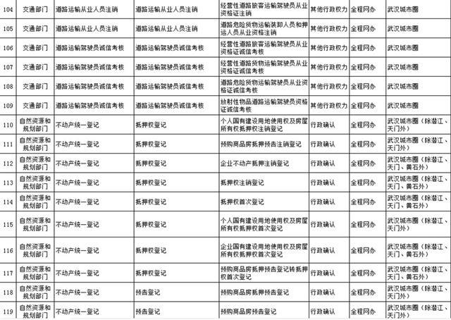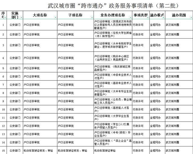 同时发布的,还有经过修正的武汉城市圈第一批106项“跨市通办”事项清单,部分事项拓展了通办城市范围,优化调整了通办事项名称。如“补发结婚证”“采矿权变更、延续、注销登记”等事项通办范围增加了鄂州市;“企业设立、变更、注销(外资)登记”“就业失业登记”等事项通办范围增加了孝感市。
