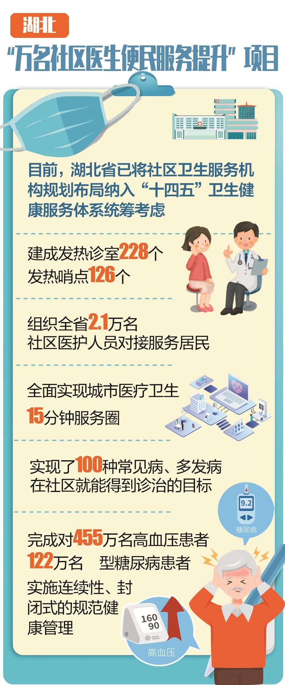 近日,极目新闻从湖北省卫健委了解到,湖北省已将社区卫生服务机构规划布局纳入“十四五”卫生健康服务体系统筹考虑,加强社区卫生服务中心发热诊室建设,已建成发热诊室228个,发热哨点126个。已组织全省2.1万名社区医护人员对接服务居民,全面实现城市医疗卫生15分钟服务圈。