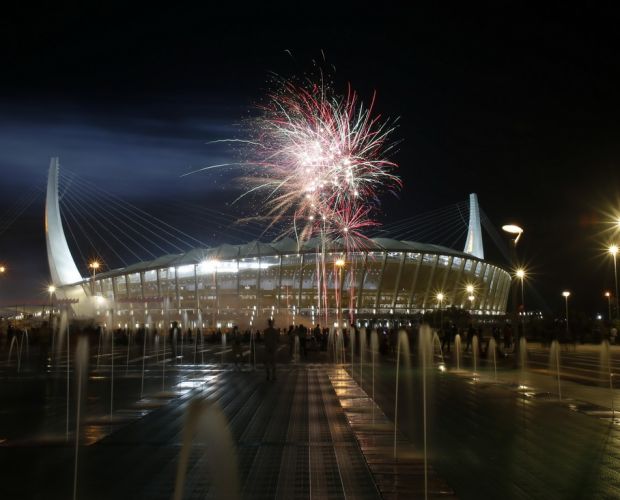 由中国政府援建、中国建筑股份有限公司承建的柬埔寨国家体育场项目18日正式启用,柬埔寨首相洪森和中国驻柬埔寨大使王文天出席启用仪式。这里将成为2023年东南亚运动会的主要场馆。新华社发(索万纳拉摄)