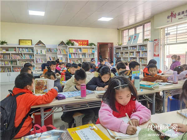 60多平方米的房子,三面墙的书架摆满了书,20张桌子摆成5排,40多名孩子或看书、或下棋、或写作业……小镇的午后,阳光透过窗温柔地照着。 12月19日,周末,随县厉山镇中心小学校外辅导站,同往常一样,充满孩子们快乐成长的美好。