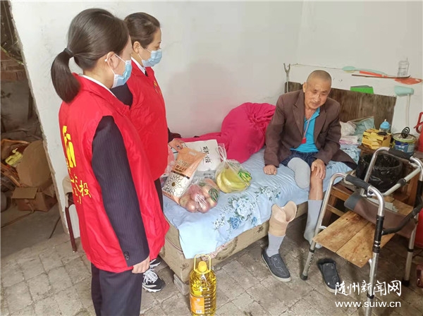 随州日报讯(记者李文军,通讯员贺永、黄靖晶)12月30日,湖北交投襄阳运营公司安居收费站的志愿者们,来到随县安居镇范家岗村残疾老汉王汉东家中,为他送去帽子、护膝、食用油等生活物资,并送去节日祝福。