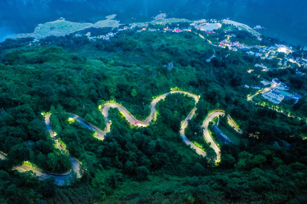↑2021年7月23日拍摄的贵州省黔西市新仁苗族乡化屋村通村公路(无人机照片)。2017年,化屋村实现脱贫摘帽。