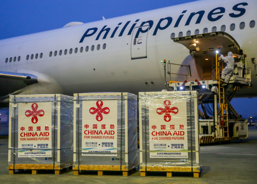 ↑2021年8月20日,中国政府援助的第三批新冠疫苗运抵菲律宾首都马尼拉。