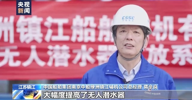 中国船舶集团南京中船绿洲镇江辅机公司总经理 蒋余良:运用这种技术,可以有效减少复杂海况下波浪、船舶摇摆等对无人潜水器布放与回收过程的影响,大幅度提高了无人潜水器布放与回收的安全性和可靠性。